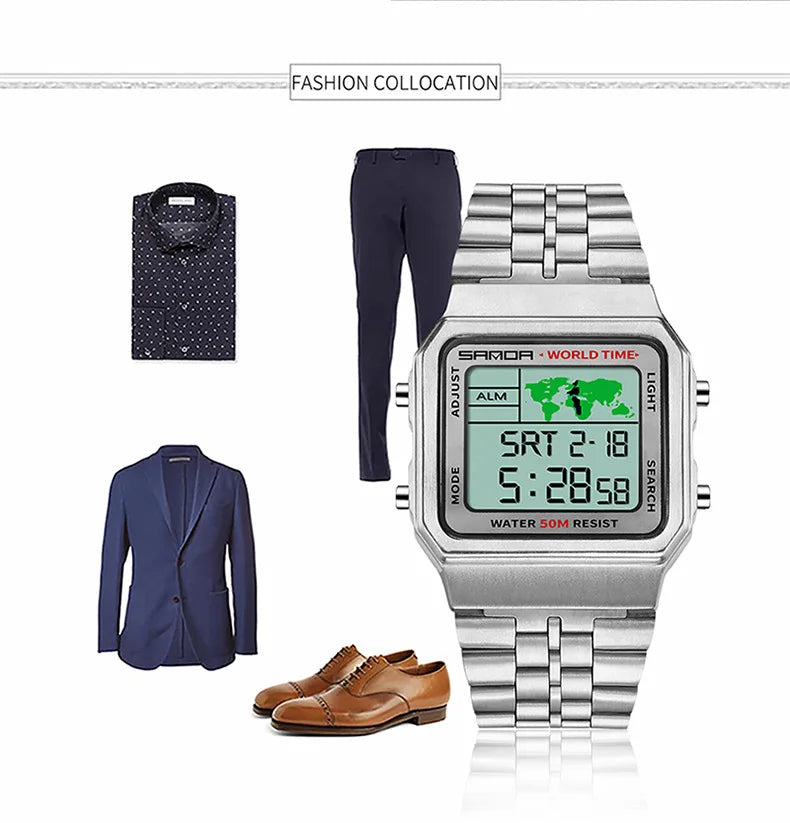 UTHAI L18 Men's Watch Retro Business 50m Waterproof Multi-function Electronic Watch Black Technology Fashion Steel Band Clock